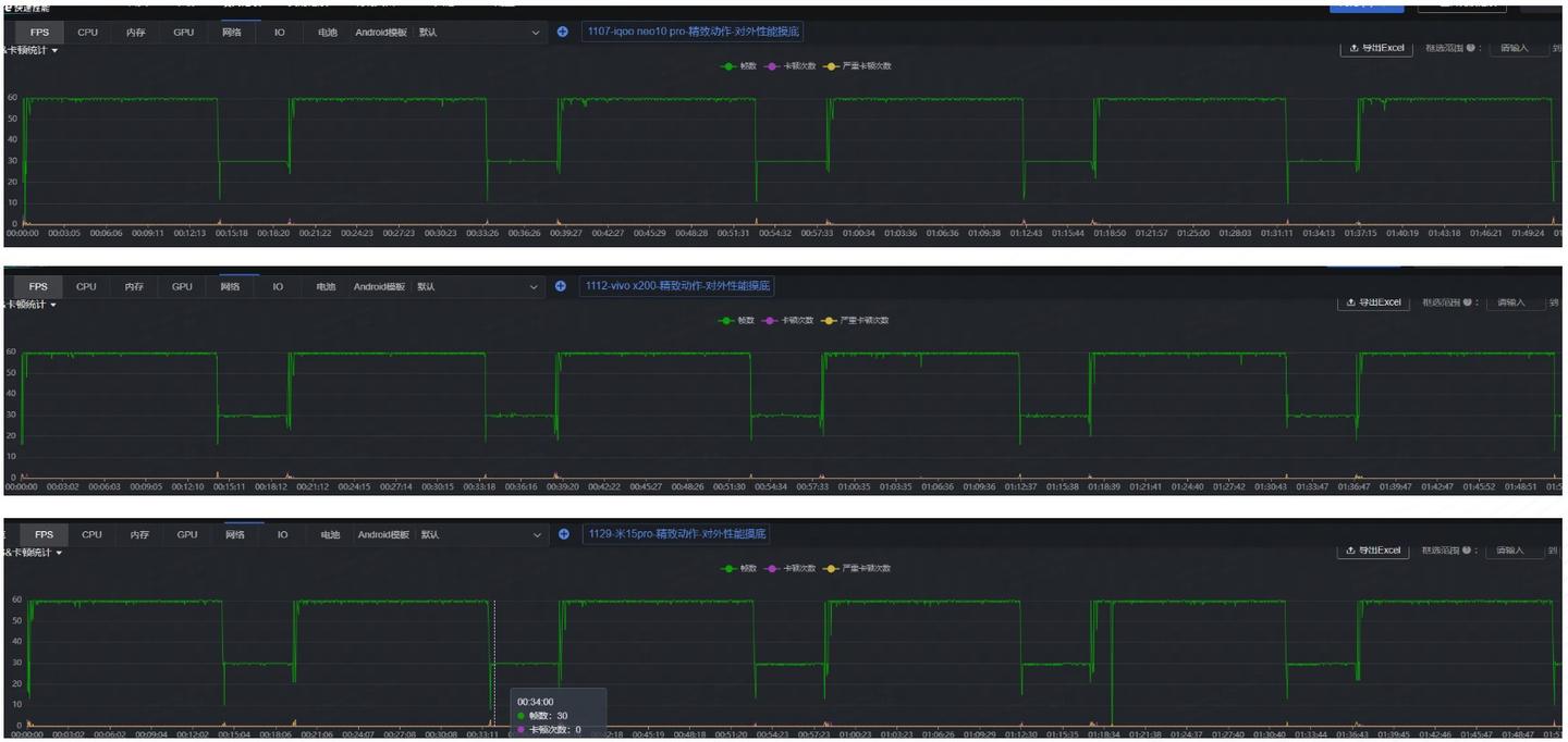我们分别针对数据大盘和具体机型设计了多张报表,比如玩家选择的配置和推荐配置的人次占比,以及推荐配置下,FPS 在不同区间内的占比情况,用于评估当前设备的实际帧率表现。此外,对全量设备进行负载条跑测,可以在游戏外放前确认每一款设备外放效果是否符合预期。