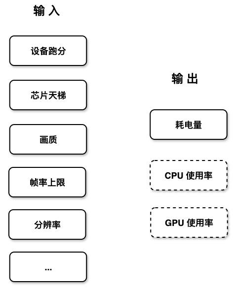 在设备负载建模的工作中,输入主要包括两大类,设备性能相关和配置参数相关,而模型输出是耗电情况,如果对 CPU、 GPU 有要求,也可以将其作为建模的输出。