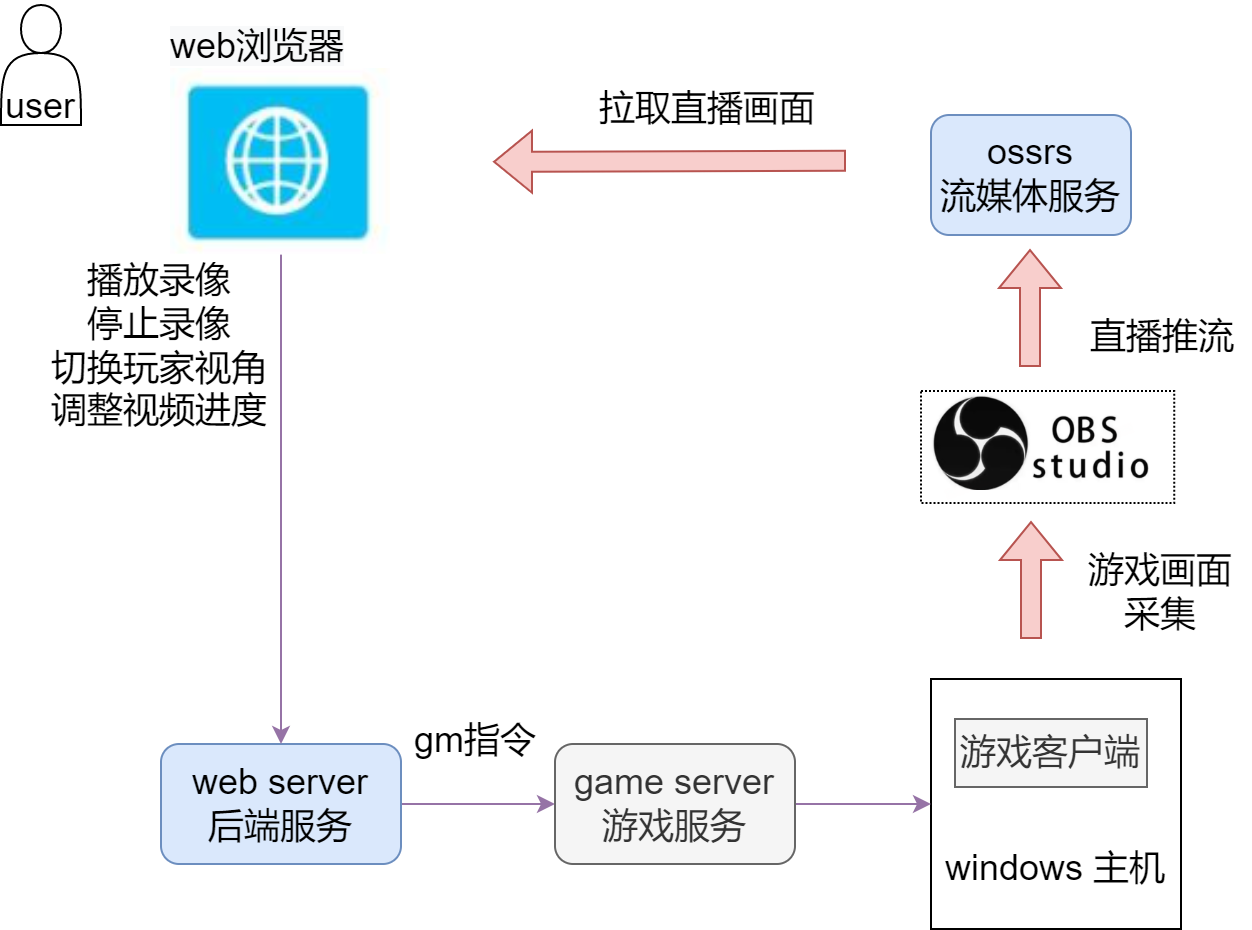 前端通过HTTP请求将这些操作发往后端,后端再通过TCP协议向游戏服务器发送GM指令,最终控制客户端完成相应的录像操作。