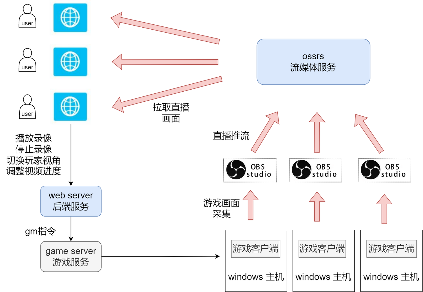 首先,利用OBS直播推流软件实时采集游戏画面,并将采集到的画面推送到提前部署好的流媒体服务上。