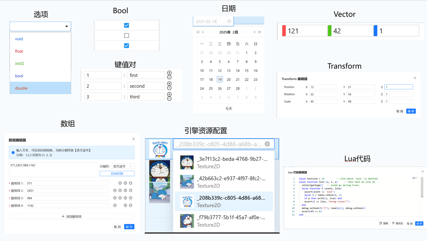 复杂类型的编辑需求:例如在游戏中要配置位置,即一个三维坐标(x, y, z),传统工具无法直接支持三维坐标的数据类型,可能需要约定格式例如:x: 10, y: 20, z: 30,那这对填写格式有强要求。