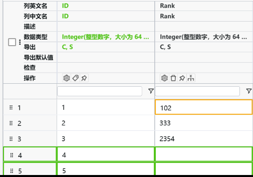 使用表格来组织数据表是一种常见的方式。通过对列进行定义,例如:列名称、列类型、导出规则。再填上数据,就可以清晰地表示数据的结构和内容。