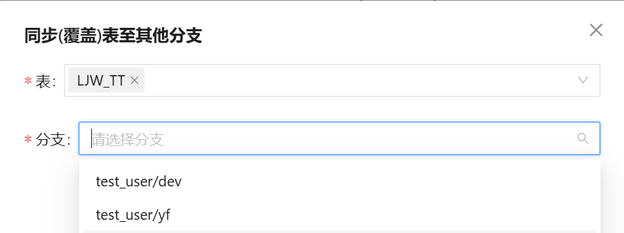 项目在多分支开发时,有时候需要将数据同步到其他分支,平台可以便捷的实现这一操作。
