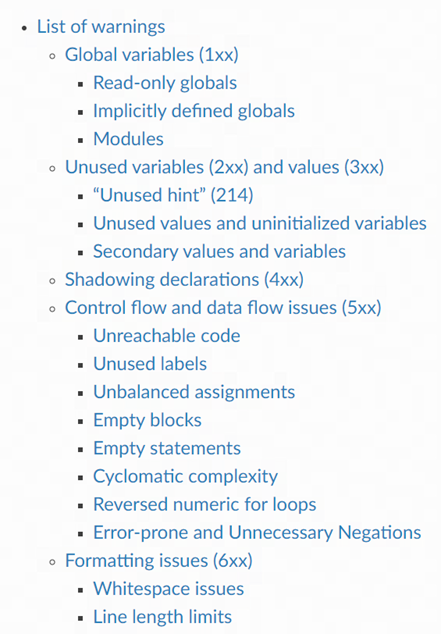 以 luacheck 中关于全局变量的检查为例,它需要把全工程的全局变量信息写入配置文件,否则一律视为未定义的全局变量。在接入比较大的项目时,能产生几十上百万条报错,需要人工一一确认。此后如有新增全局变量,还需手动更新配置文件。