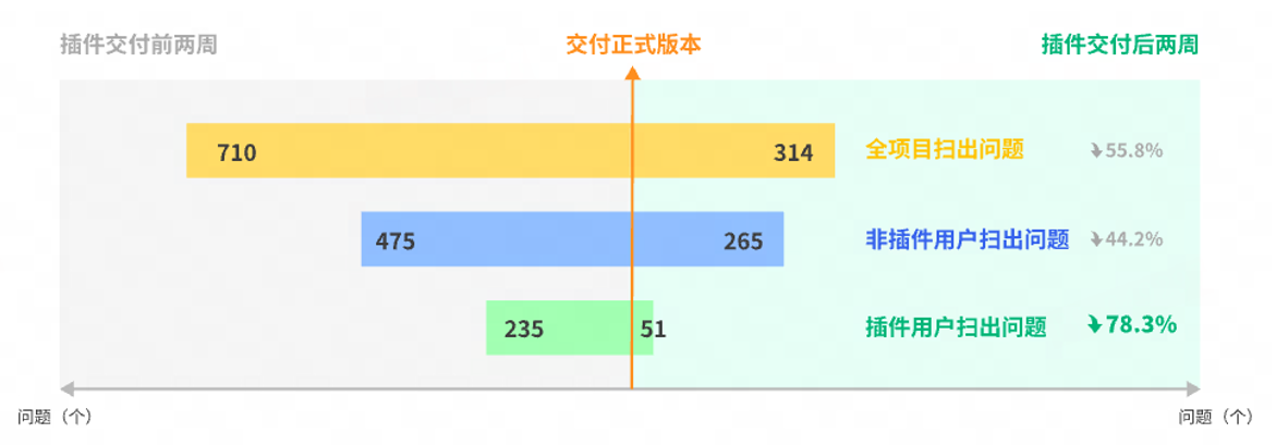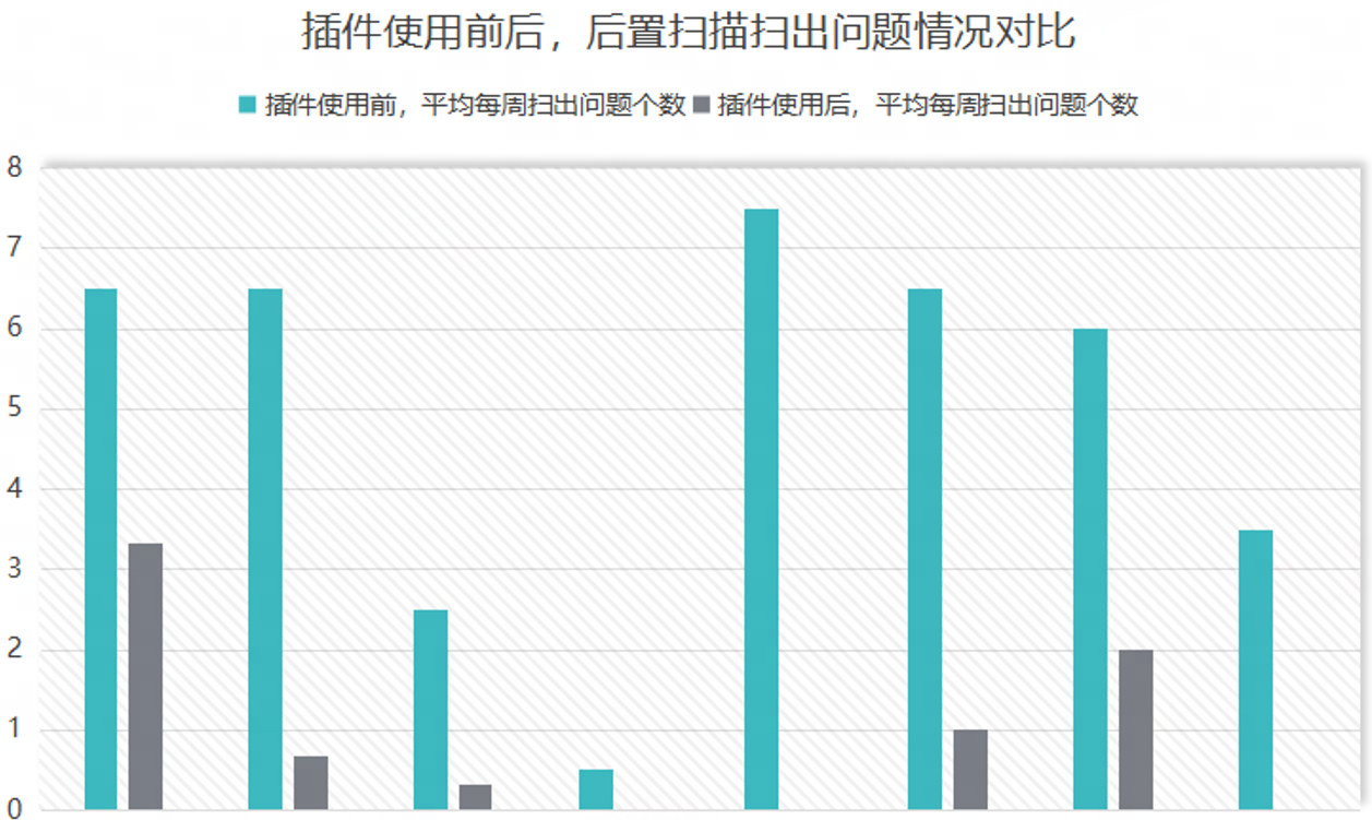 工具接入项目后,检出了大量的历史遗留问题并进行了修复。推广 IDE 插件使用后,进一步提升了代码质量。使用 IDE 插件后,开发者在编写代码时能够及时发现问题,减少了后置扫描时检出的问题。